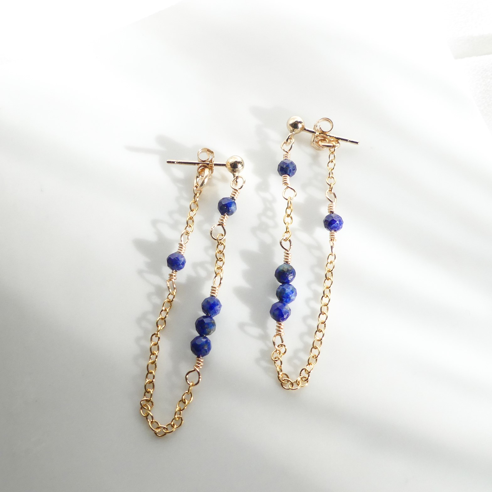 Boucles d’oreilles réalisées à la main en gold filled et lapis-lazuli